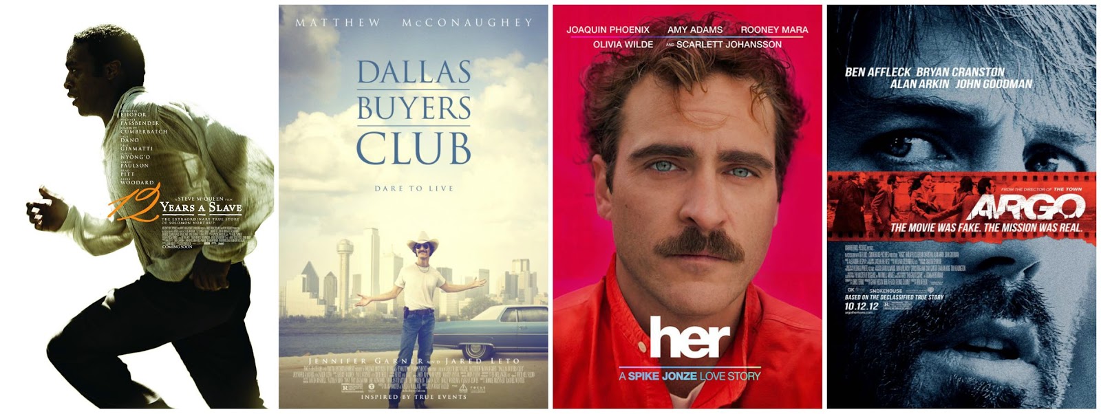 12 Years a Slave, Dallas Buyers Club, Her, Argo.